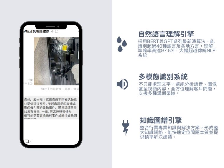 宇翔資訊聯盟是一個由全台維修工程師與行銷專家共同組成的互聯網維修平台團隊,致力於推動傳統維修產業的數位轉型。這些合作聯盟店家不僅導入雲端服務與AI技術,更全面使用宇翔資訊開發的 CRM 維修管理系統與智慧客服機器人,實現自動派工、客戶追蹤與即時回應。